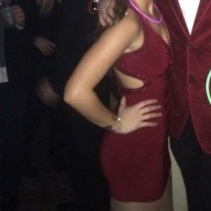 Color: Wine. Sequence straps. Open back, deep neck line. Wore once on New Years