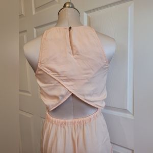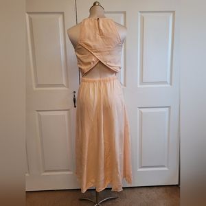 Lightweight, dreamy and peachy open back dress.