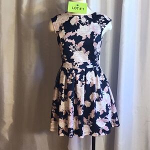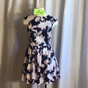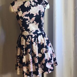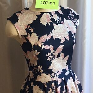 Base material is navy with beautiful pink & white roses accented in metallic silver.
