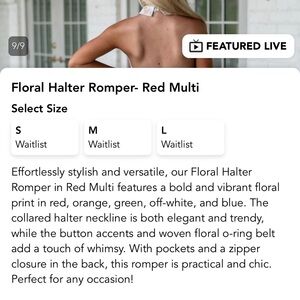Super cute open back romper! Worn once! Like new! From these three boutique! Belt is adjustable but buttons are faux! Romper buttons at the back neck! Has pockets!