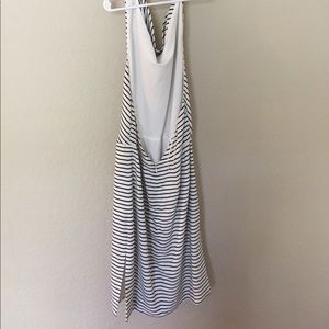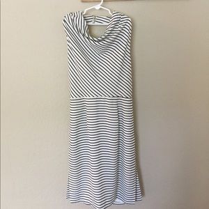 This dress is form fitted on the bottoms and with a scarf like neckline