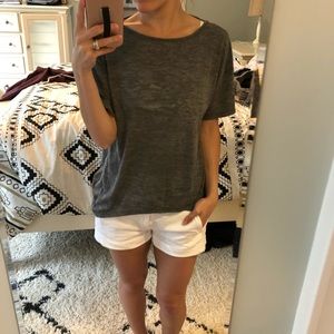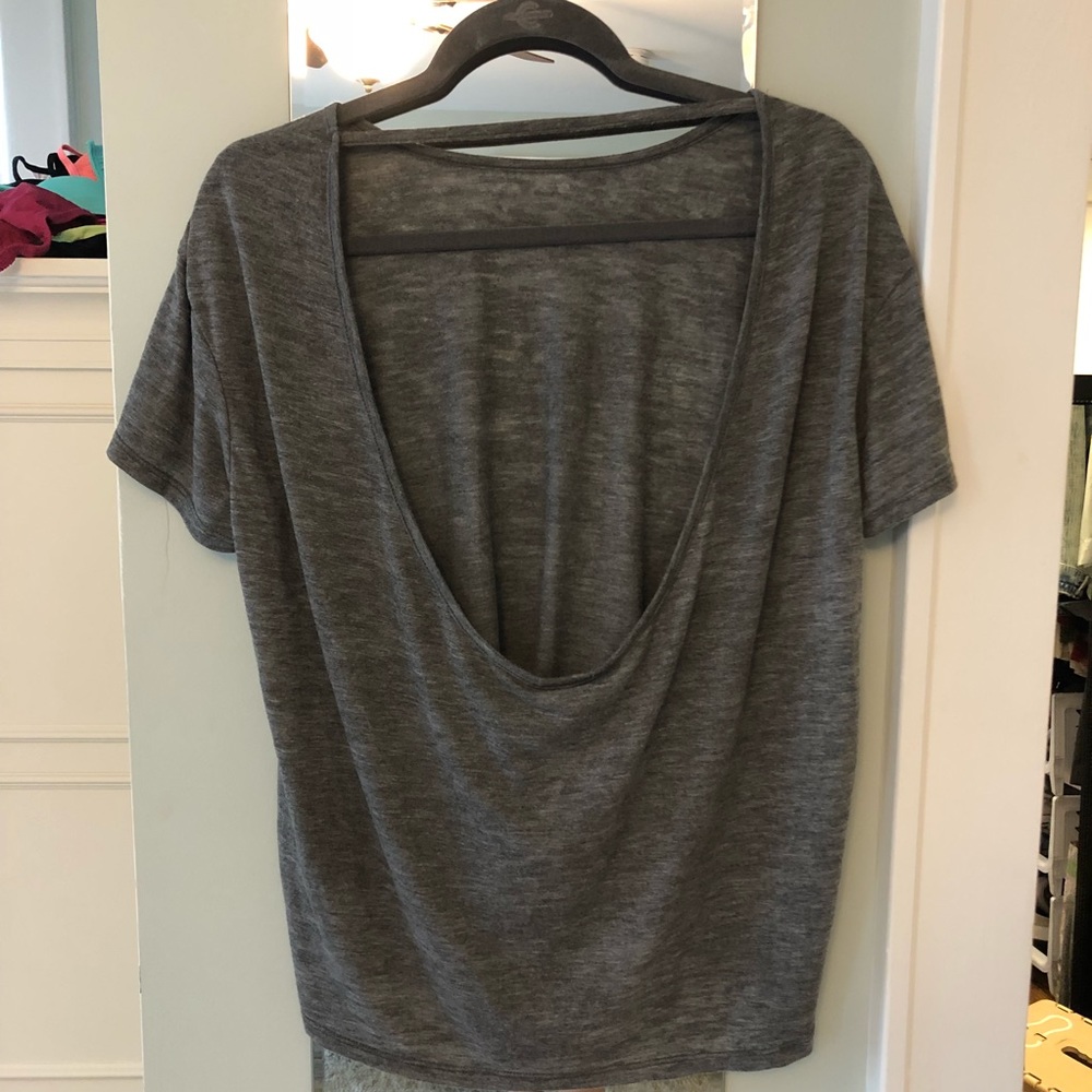 Gray open back top. Very comfy!
