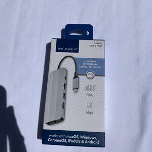 HDMI port with 4K resolution, 60Hz displays, Ethernet port supports 1 Gbps high-speed internet. Two USB 3.0 ports, an SD slot, and a TF slot let you transfer files. 5 Gbps. Add more ports to your setup with the Insignia 7-Port USB-C Hub.
