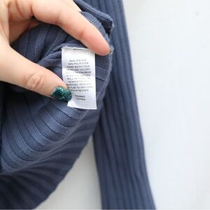 NWOT Open Edit Blue Shadow Ribbed Button-Up Long Sleeve Sweater Top Womens M