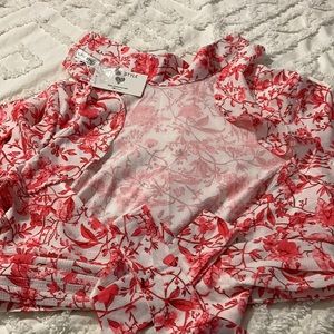 Long sleeves with pearl buttons adjustable tie wrap at waist but CENTER is completely open please see pics