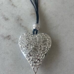 OPEN HEART SILVER NECKLACE W BLACK ADJUSTABLE CORD! This necklace is stunning in person!! Will match every outfit!!! New!!