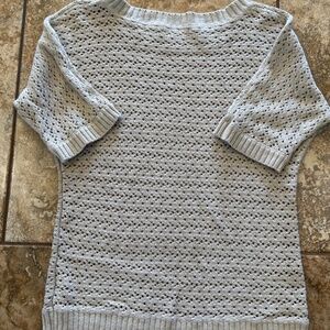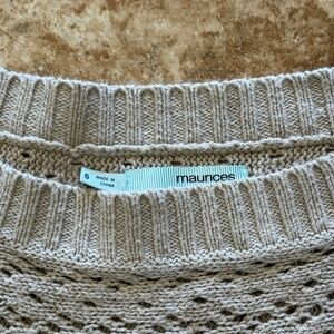 Maurices size small 1/2 sleeve/short sleeve, open knit beige/tan, lightweight sweater with crew/round neck line. Lightly used condition. Smoke free home.