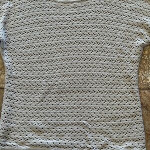 Open knit tan beige short sleeve ladies womens sweater size small top blouse