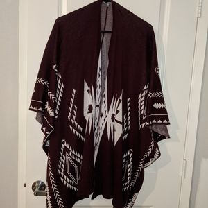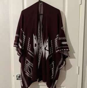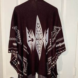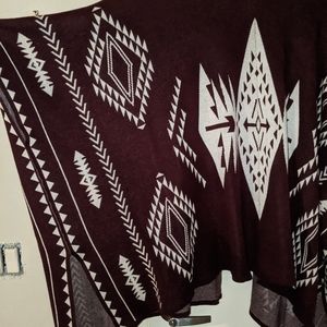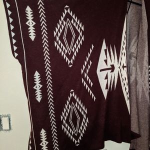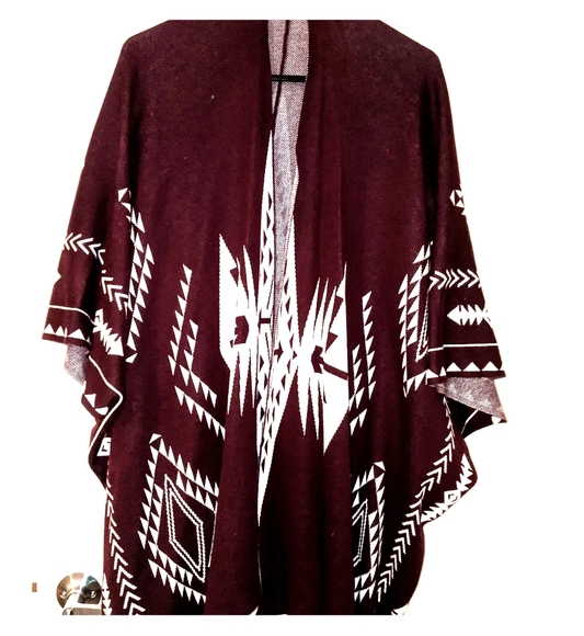 This open pancho is perfect for the upcoming holiday season. You can pair it with a cute belt for an elegant design openly drape it over your outfit. It has a beautiful tribal design on the front and back.