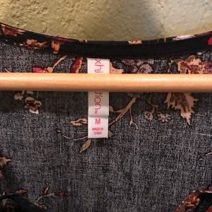 Open shoulder blouse with a cross tie string in on chest. It's an open flowing fit; material is rayon. Excellent condition. Size medium.
