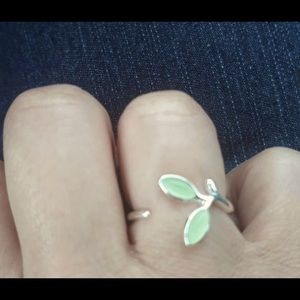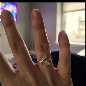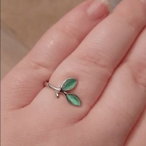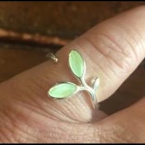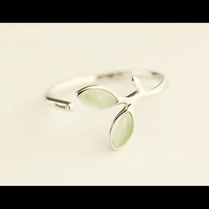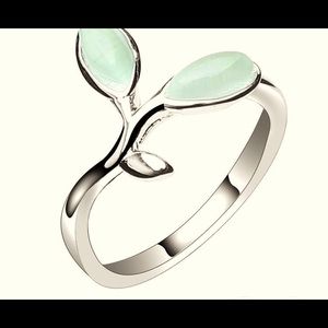 Open design green leaf ring High quality 925 Sterling silver Green opal gemstone fashion Simple elegance Not stamped