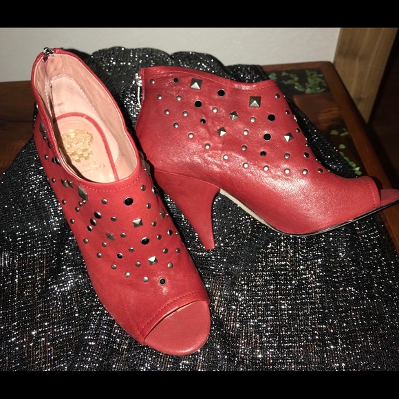 Sexy Persian red studded open toe bootie 4.5 inch heel. In original box.
