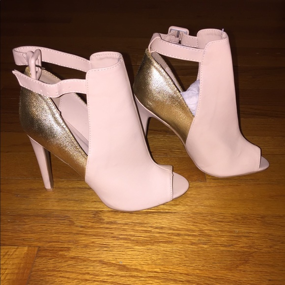 Cream and gold open toe booties. Brand new. 4 inch heels. No box.