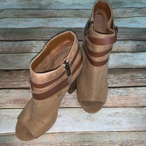 Open toe ankle boots, so cute for summer and fall! Small imperfections as shown on photos , but great over all condition.