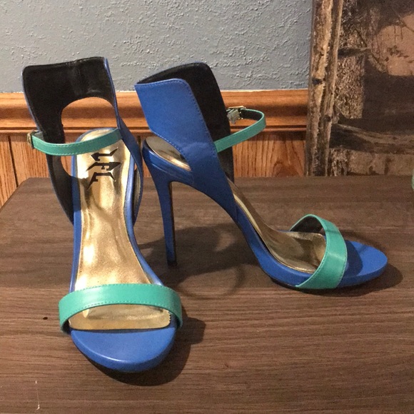 Teal green and royal blue heels open toe single strap about 3.5inch heel ankle strap with buckle...shoes have never been worn outside of trying them on. I got them a few years ago and I have no idea where the box is