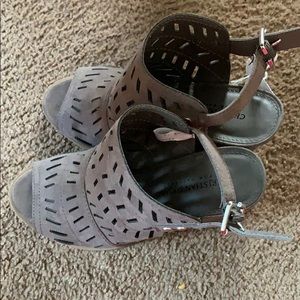 Brownish/gray open-toe heels. New with tags. Never worn. Smoke free/pet free home