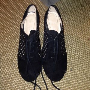 Black laced 3 inch heels from forever21. Purchased 4-5 year ago. Don't think I ever wore these, if so maybe once. Just a note, When I purchased them (seen in last pic) there was a little bit of rubber that came off the side of the heel on right one, but I decided to purchase it anyway, so there is a tiny mark. super cute! And comfortable.