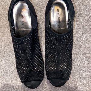 Cute shoes and actually very comfortable! Open toe feature as well as a cut out pattern for that sweet extra little touch. These have been worn a handful of times but are in wonderful condition and ready for a new home!