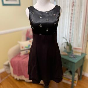 Steal the show in this adorable LBD! With an open tie back, sweet flower embroidery, and a double hem, you’re sure to whisk the night away.