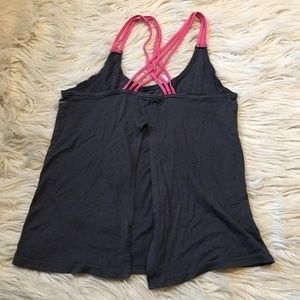 Open-back workout top with crisscross straps. Fits like a small.