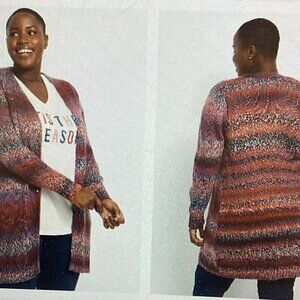 An out-of-this-world cozy cardigan in a bold & bright spacedye print.