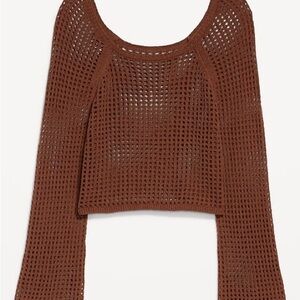 Stylish brown open-knit sweater. Perfect for layering. Light weight, great for all seasons