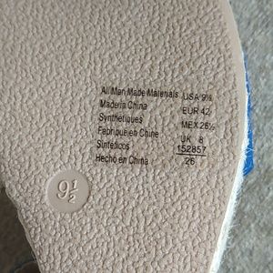 These electric blue open-toed wedges are the perfect shoe for any occasion! They are approx. 3 1/2 inches in height and buckle closed at the ankles on the outside of the foot. They give off a very beachy/summer vibe. Only worn once