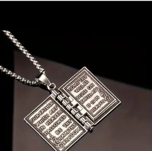 Openable Bible Pendant Necklace, "The Lords Prayer"