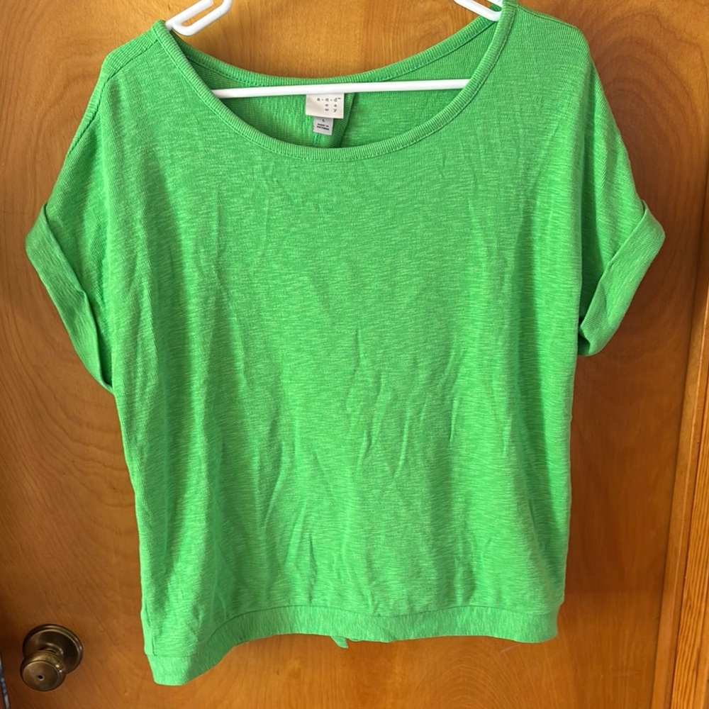 Short sleeve bright green top with open-back with tied closure. Brand new, never worn.