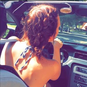 Cute for a summer look or wear with a sweater, dark blue with designs on it and an open back. Me wearing it in one of the pictures ♥️.