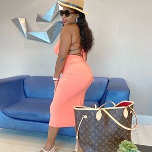 Open back criscross maxi fashion dress.