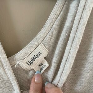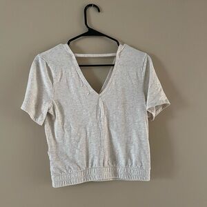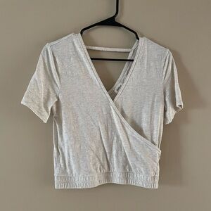 Size XSmall. Color is called ‘Oatmeal’. Cropped length, wrap top with open back detail.