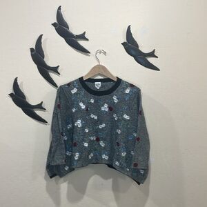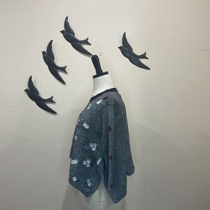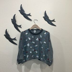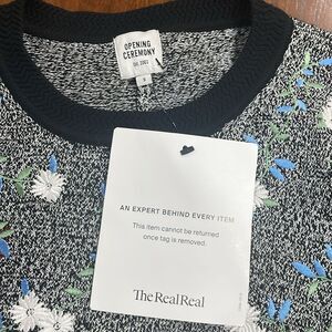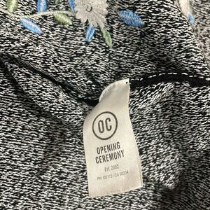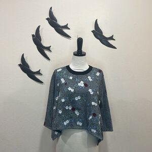 Opening Ceremony Black Embroidered Floral Sweater 3/4 Sleeve Handkerchief Hem S
