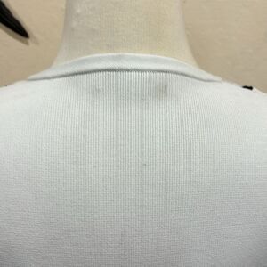 Crew neck; Sleeveless; Sheer cutout waist accents; Piped contrast design with fleece inset details; Stretch knit construction; 54% viscose, 28% nylon, 18% Lycra; Hand wash cold; Imported