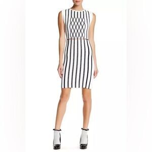 Opening Ceremony Black/White Striped Piped Argyle Two-Tone Bodycon Dress - S / M