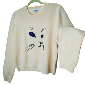 Opening Ceremony Butter Cream Crew Neck Cat Motif Sweater L