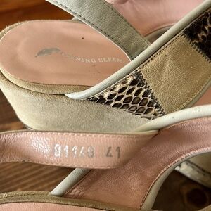 Opening Ceremony Cream Suede Leather & Snakeskin Ankle Strap Platform Wedges