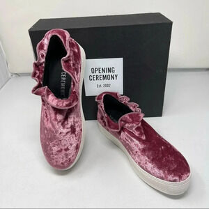 Opening Ceremony Didi Velvet Ruffle Sneakers 37EU Slip On Pink Ash Rose