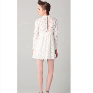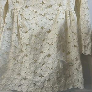 Opening Ceremony Lace Mini Dress Collar Long Sleeve Sheer Bridal Wedding 2 Cream