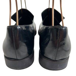 Opening Ceremony Leah Leather Faux Pearl Embellished Loafers, black leather, slip on, faux pearl details, leather lining and soles, round toe, EU 37 / US 7, preowned and shows wear on the soles, creasing and scuffing - see photos