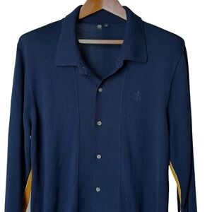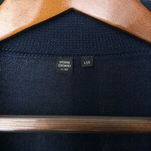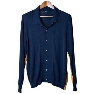 Opening Ceremony Men's Large Knit Collared Cardigan Color Block Navy Blue Orange