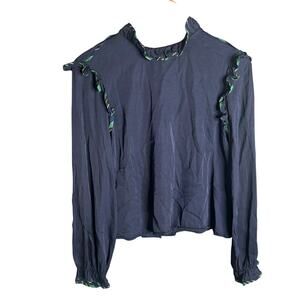 Opening Ceremony Persian Blue Twill Ruffle Trim Blouse Navy Size 2