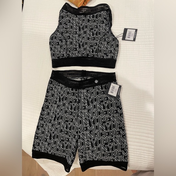 This Opening Ceremony workout set is iconic! Basically vintage at this point, and new with tags. Cool logo print the lace detailing at top and bottom. A show stopping workout set 🫶