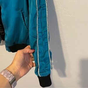 Opening Ceremony Silk Aqua Crushed Velvet Reversible Bomber Jacket Size XS