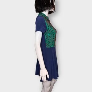 Opening Ceremony Silk Embroidered, Pleated Skater Style, Peter Pan Collar Dress