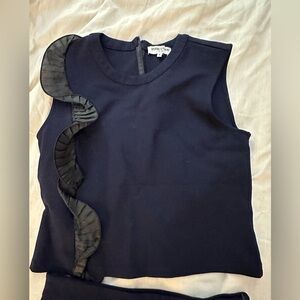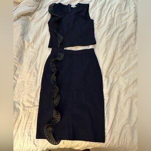 Opening Ceremony Stretch Ruffle Trim Cropped Top & Midi Skirt, Ink