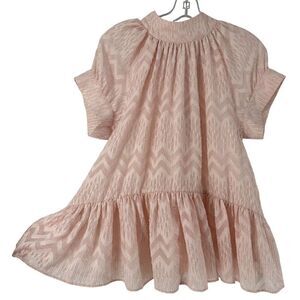 Opening Ceremony Top Light Pink Short Sleeve Puff Sleeves Ruffle Hem Gold Threading Bow Back With Keyhole Mock Neck Classic Preppy Girlie