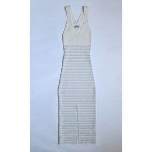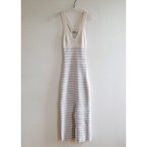 Opening Ceremony V-Neck Striped Split-front Ribbed-knit Body-con Midi Dress - XS