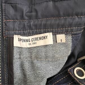 Opening Ceremony Women’s Patchwork Navy Multi Denim Jeans Keyhole Mini Dress 0