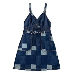 Opening Ceremony Women’s Patchwork Navy Multi Denim Jeans Keyhole Mini Dress